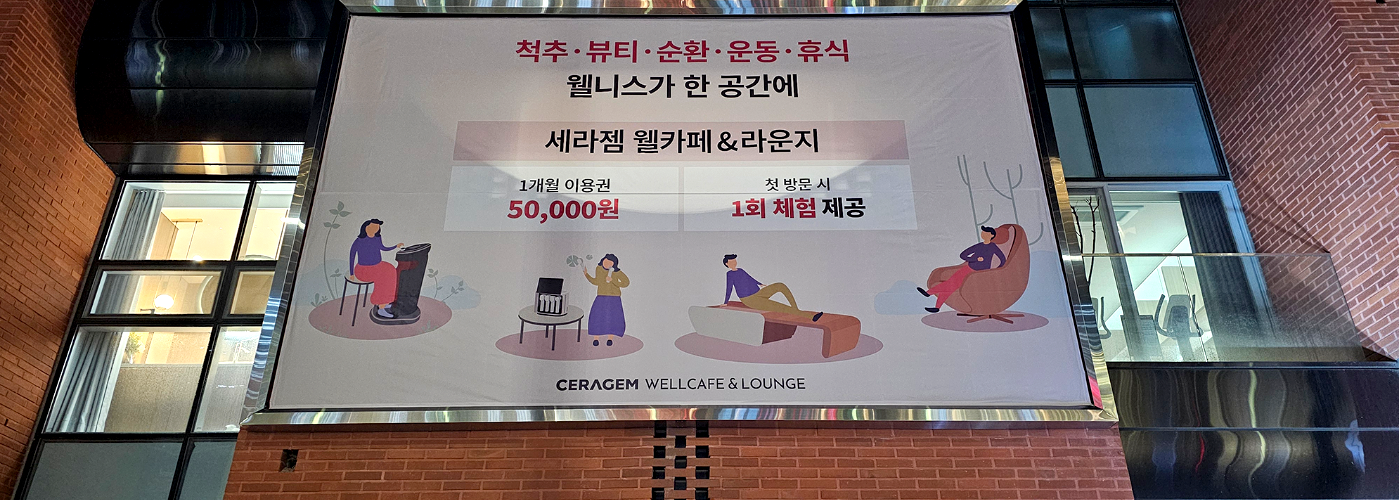 건물 손상 없이 넓은 벽면을 활용해서 눈에 띄는 대형 홍보 효과를 노릴 수 있습니다.